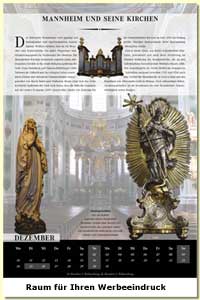 Kalender, wird mancher sagen, sind Gebrauchsgegenstände, nicht mehr und nicht weniger. Für andere jedoch sind sie kreative Kunstwerke, die als Blickfang die eigenen Wände zieren. Ein Wandschmuck der besonderen Art ist die kalendarische Zeitreise „400 JAHRE MANNHEIM“. Ansprechend setzt dieser hochwertige Bildkalender die wechselvolle Geschichte, facettenreiche Kultur und wertvolle Architektur der Quadratestadt in Szene. Erinnerungen werden lebendig an eine Stadt, die im 18. Jahrhundert als kurfürstliche Residenz eine hohe Blüte erreichte und sich später um die Erfindung des Fahrrads, des Automobils und der Landmaschinen verdient gemacht hat. Zeitreise durch die Rhein-Neckar-Metropole - Mehr als nur 12 Kalenderbilder! Erleben Sie eine kalendarische Zeitreise durch vier Jahrhunderte, die mehr bietet als nur 12 Kalenderbilder. Jedes Monatsblatt lässt ein besonderes Glanzlicht der Mannheimer Geschichte und Gegenwart erstrahlen. Was dabei aus vielen interessanten Bildmotiven entstand, sind 12 kunstvolle Collagen von einnehmender Schönheit und hoher Designkunst. Bereichert wird dieser Kalender durch wissenswerte Text-Bild-Informationen über Kurfürst Carl Theodor und weitere berühmte Persönlichkeiten, das Residenzschloss und die Kunstschätze der Reiss-Engelhorn-Museen, die Kirchen der Stadt und vieles mehr. |